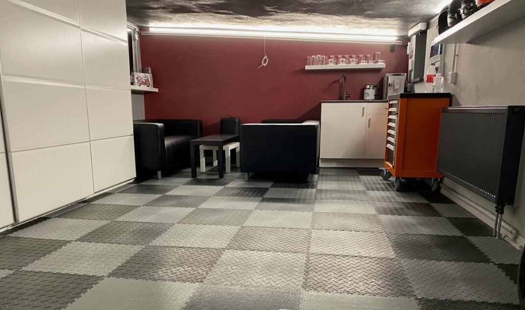 Ein weiterer Vorteil der Fortelock PVC-Fliesen ist ihre einfache Installation und Wartung. Die Fliesen lassen sich schnell und unkompliziert verlegen, was Zeit und Kosten spart. Darüber hinaus sind sie leicht zu reinigen und erfordern nur Ein strapazierfähiger Fortelock-Boden ist eine praktische Wahl für stark frequentierte Bereiche wie Garagen und Lagerhallen. minimale Wartung, was ihre Lebensdauer weiter verlängert.